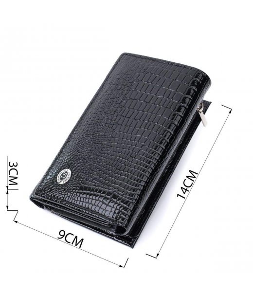Жіночий гаманець у три складання з лакованої фактурної натуральної шкіри ST Leather 22707 Чорний