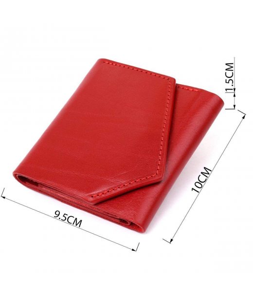 Гарний жіночий гаманець з оригінальним скошеним клапаном на магніті. Всередині має просторе відділення на всю довжину для купюр, слоти для пластикових карт і доступну монетницю на блискавці на зовнішній стороні. Матеріал виготовлення - натуральна шкіра високого класу. Колір виробу - соковитий червоний.